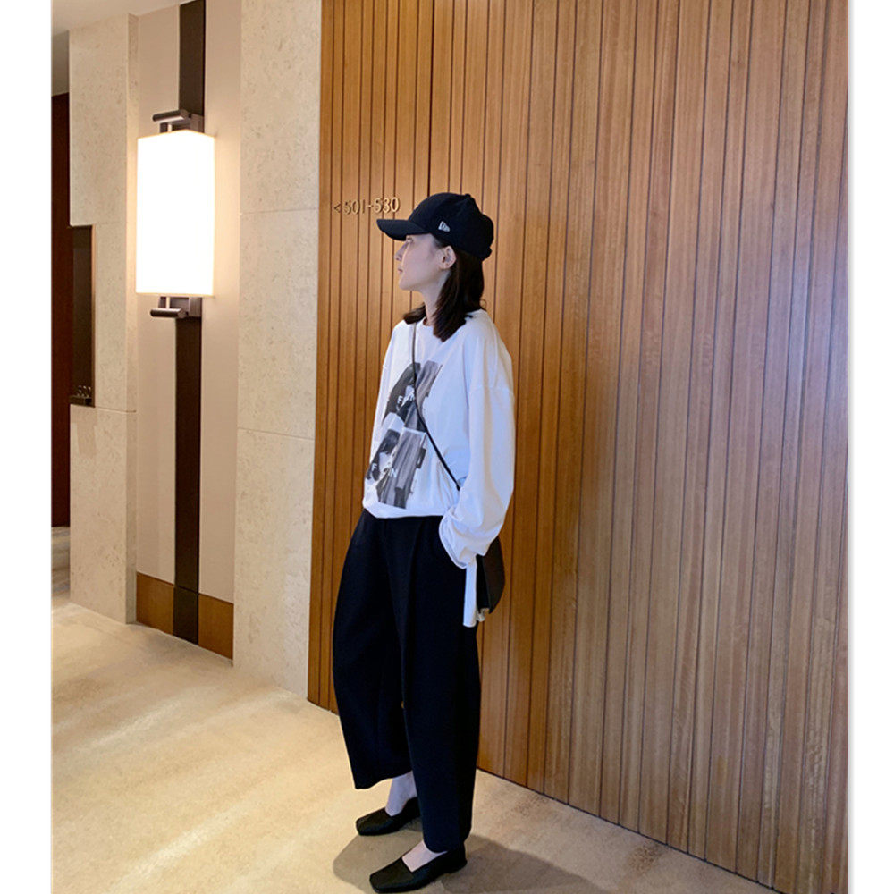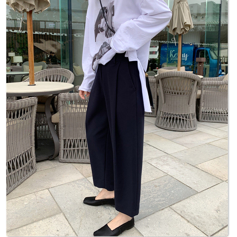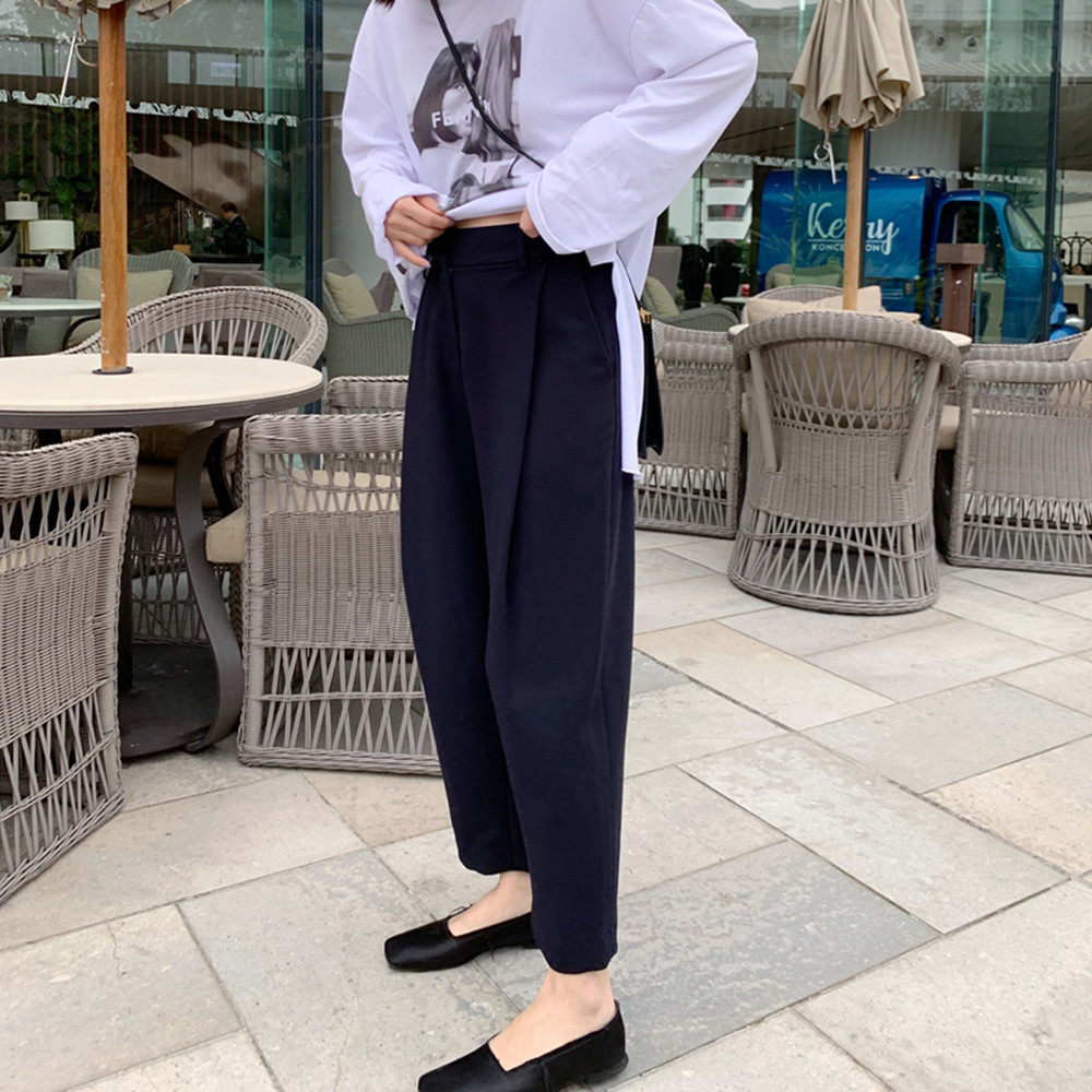 Design西装 黑色萝卜裤 裤 显瘦高腰休闲九分裤 直筒宽松哈伦裤