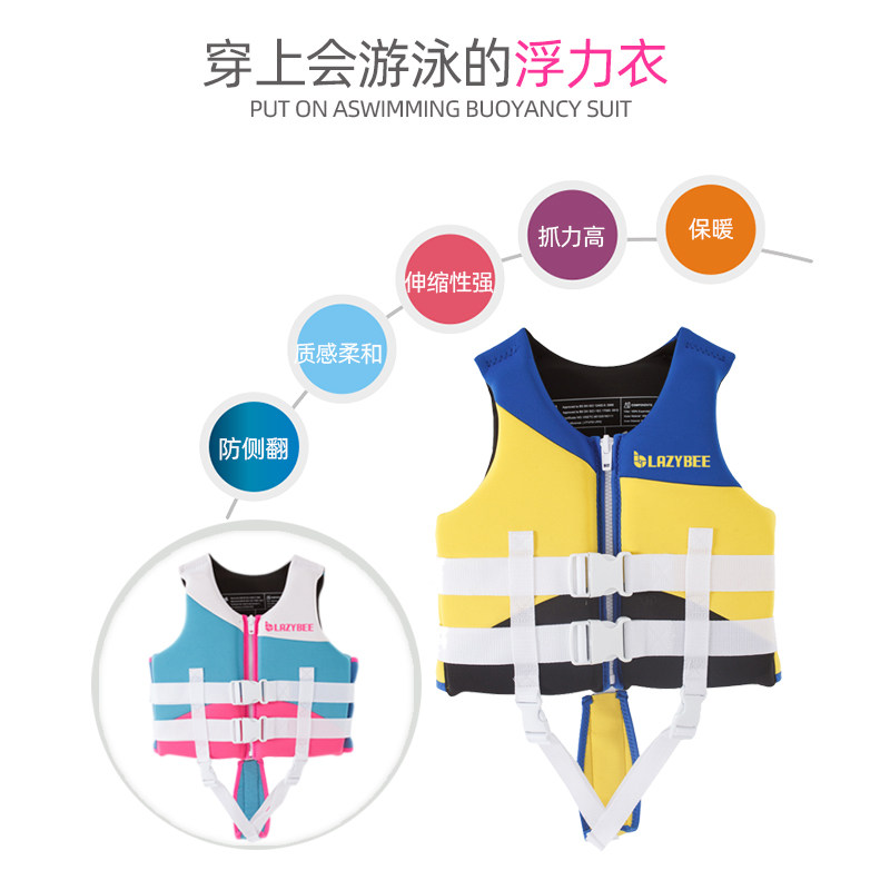 LAZYBEE儿童救生衣浮力背心小孩泳衣马甲学游泳服多功能便携专业