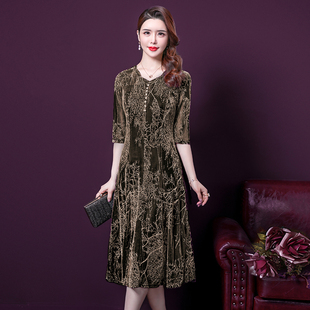 裙子 连衣裙中年清仓肥胖妈妈夏装 香云纱桑蚕丝真丝中老年大码 春装