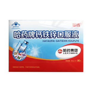 哈药牌钙铁锌口服液儿童补钙铁锌口溶液三精90支蓝瓶钙少年孕产妇