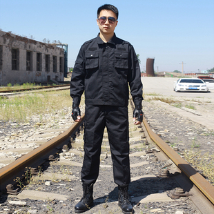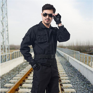 战训练黑色耐磨套装 长短袖 特保安制服男 网格训练服夏春秋冬季 正品