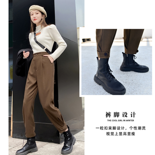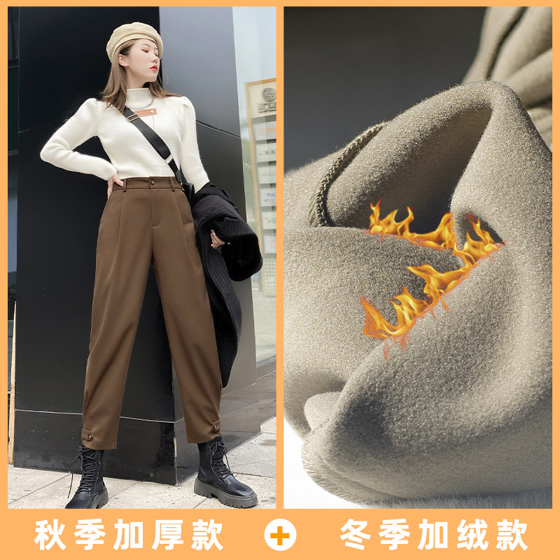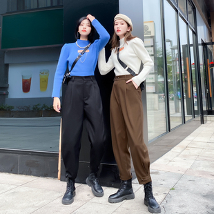 显瘦九分小脚萝卜裤 复古百搭休闲加厚束脚裤 子 女秋季 高腰哈伦裤