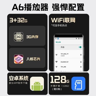 纽曼A6八核智能WIFI触摸全面屏全格式 高清MP4无损MP3蓝牙播放器