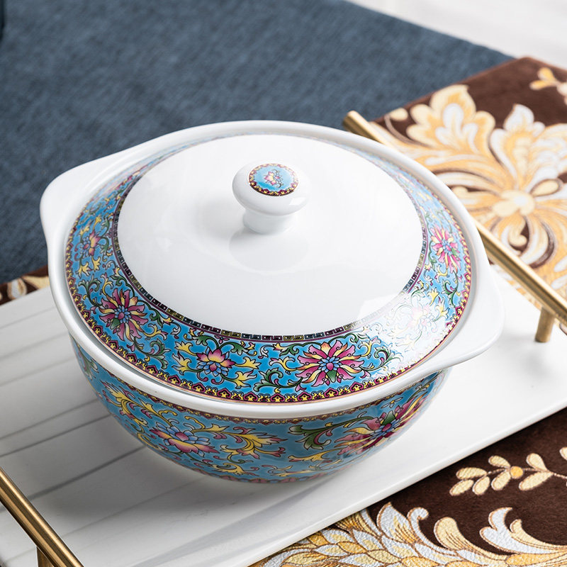 陶瓷泡面碗带盖宿舍用学生专用碗可微波炉面碗食堂个人专用打饭碗
