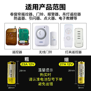 27a12v电池23A12V车库电动卷帘门铃风扇吊灯遥控器l828小号短电池