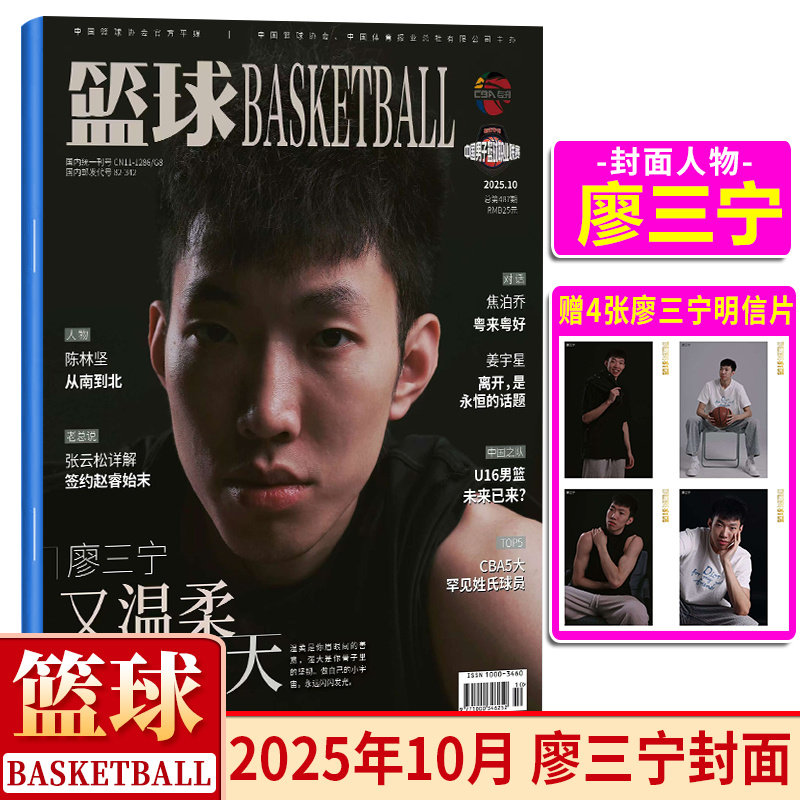 篮球CBA专刊杂志2026年1月王睿泽 赠4张明信片 期 1月 赵睿封面 12月周鹏任骏飞徐杰胡明轩赵睿 原帅 徐杰