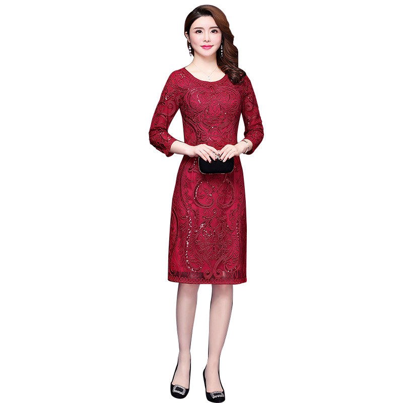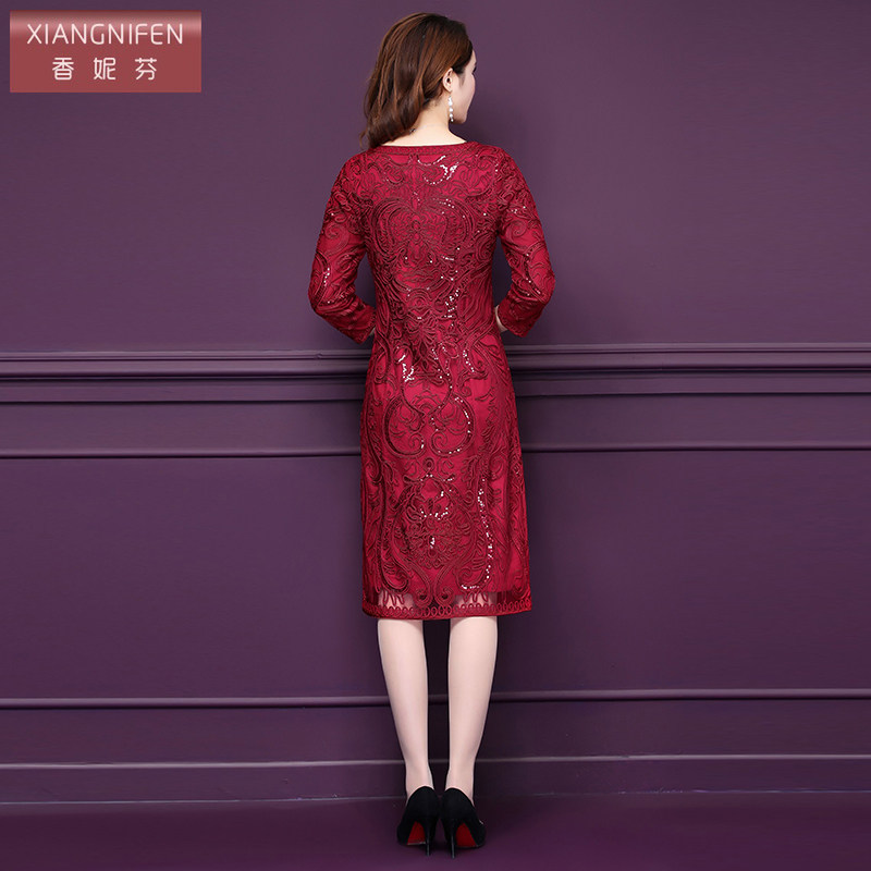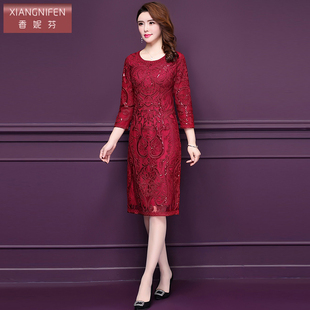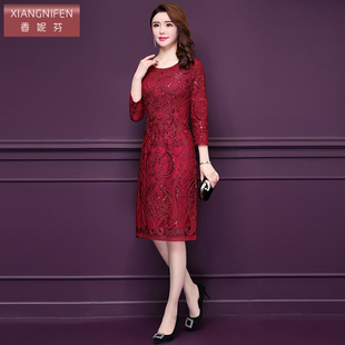 高贵绣花礼服女 蕾丝妈妈连衣裙婚礼宴会中长款 香妮芬2025秋季 新款