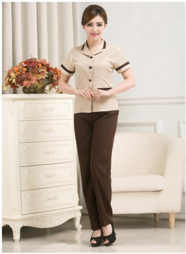 咖啡物业客房清洁黑色裤 女裤 子 两侧松紧腰直筒大码 酒店保洁工作裤