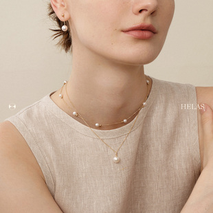 HELAS赫拉极简海水Akoya珍珠项链女真珍珠吊坠18K金单颗珍珠颈链
