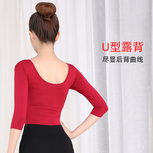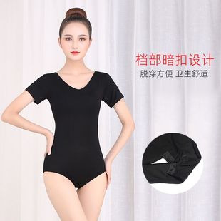 v领形体服训练服装 女上衣连体黑色体操服芭蕾舞蹈成人艺考练功服