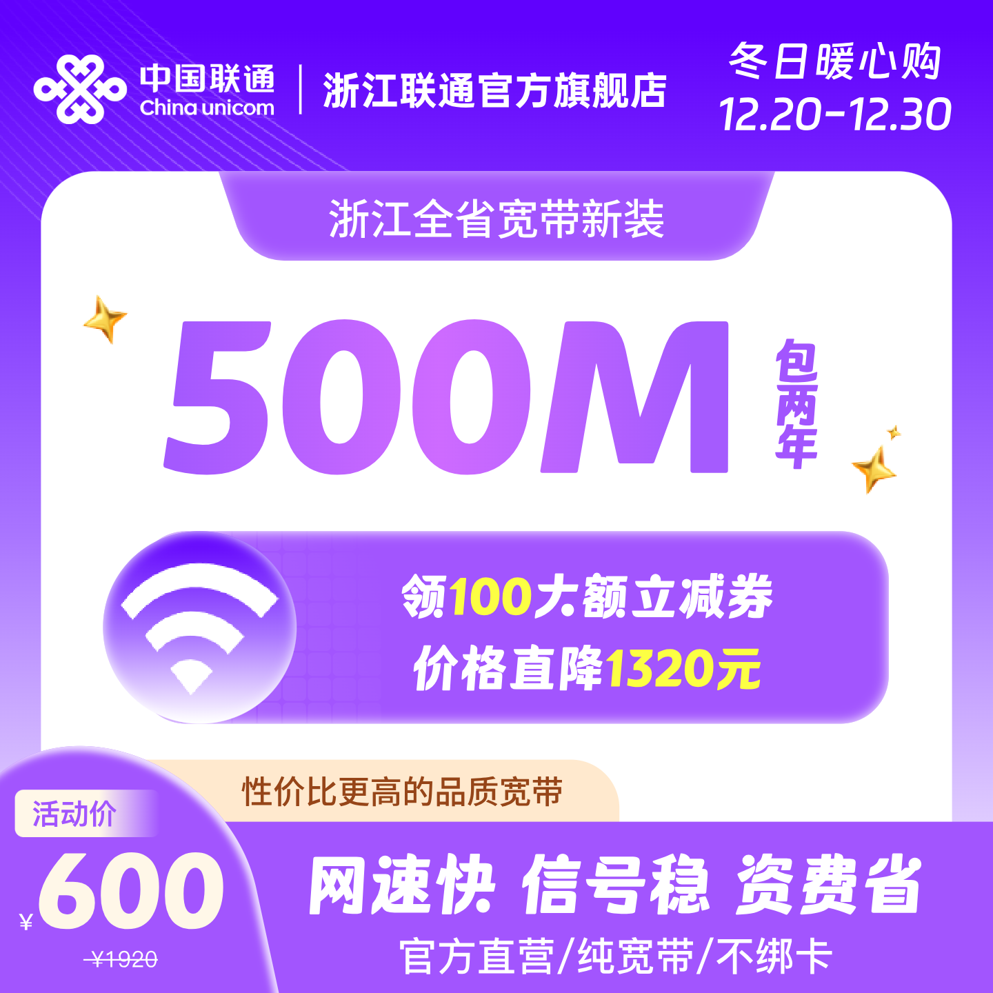 联通宽带500M包年浙江光纤宽带办理新装 杭州宁波全省宽带上门安装