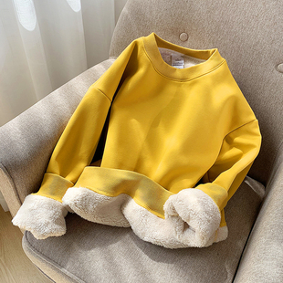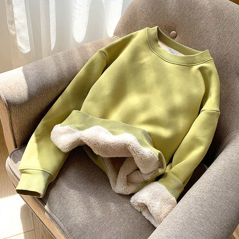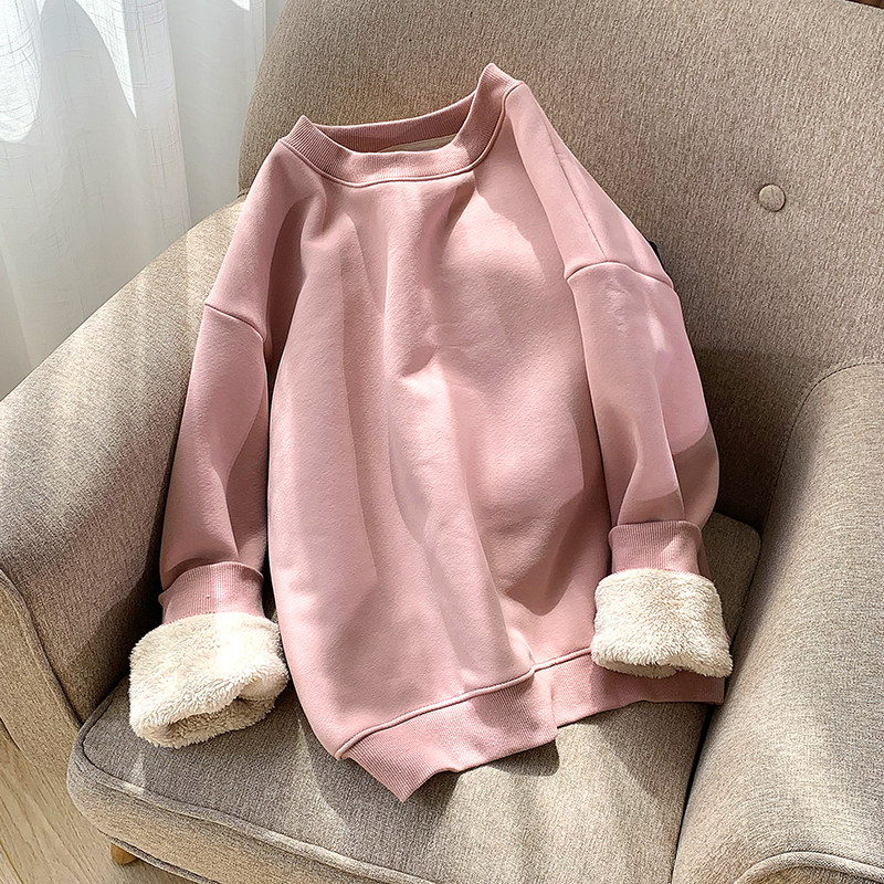 纯色羊羔毛绒套头外套上衣 秋冬季 卫衣2020新款 女加厚加绒宽松韩版