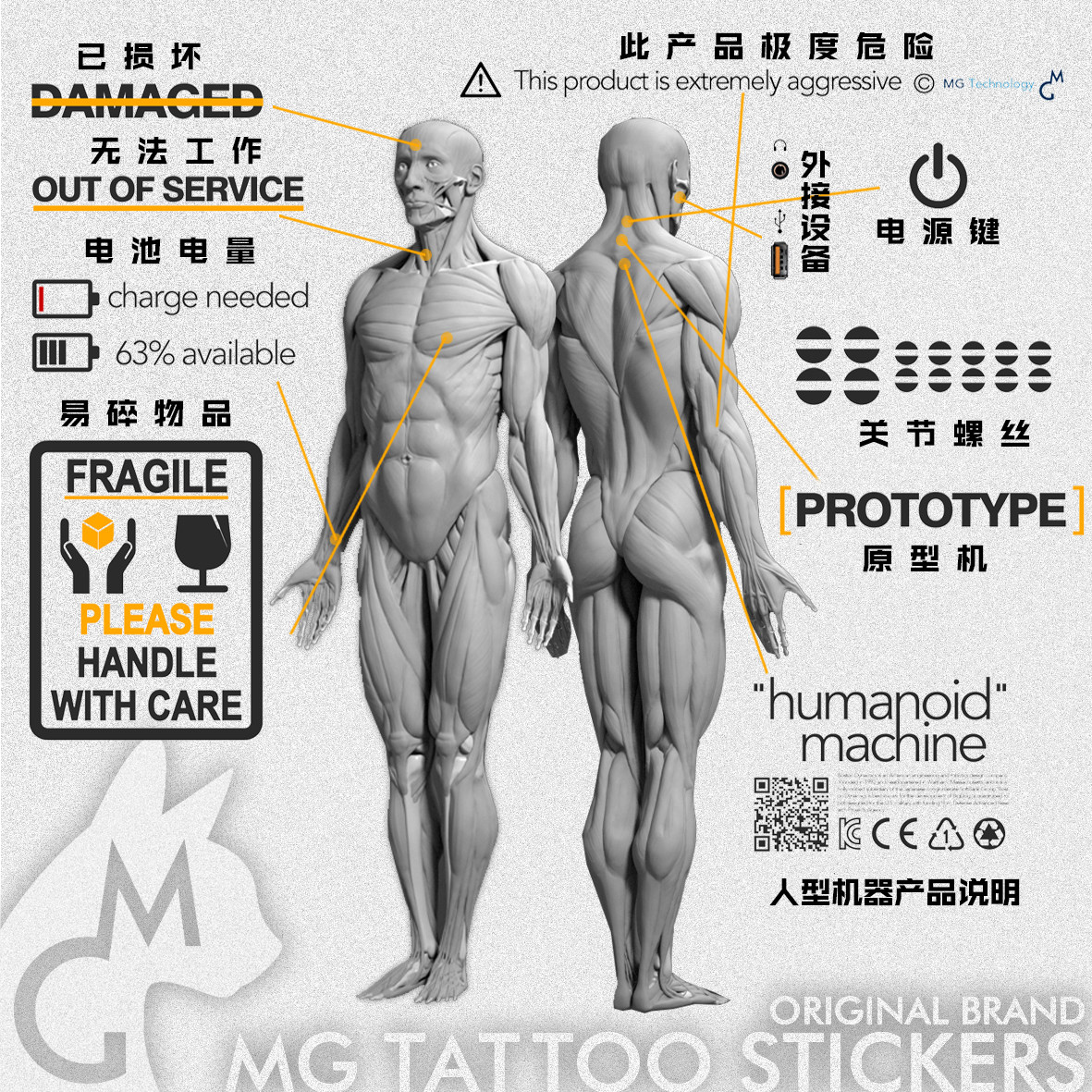 赛博朋克未来感机器人特工 编号1986 人体电路板 纹身 TATTOO