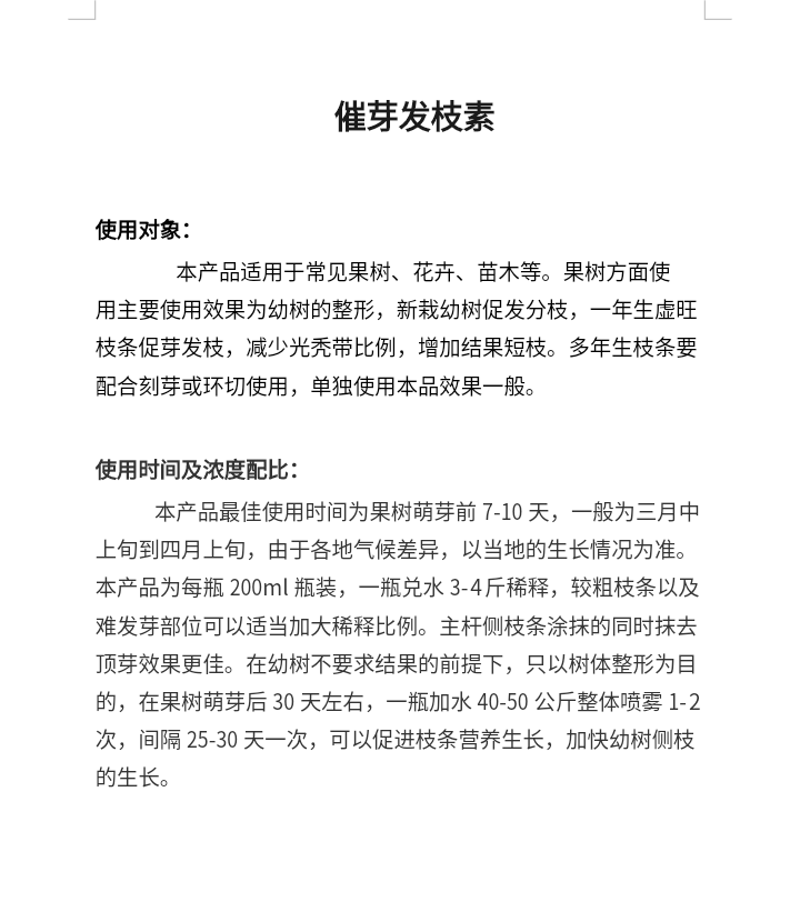 果树发枝素抽枝宝催芽剂苹果猕猴桃苗木花卉花芽素细胞分裂素 包邮