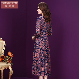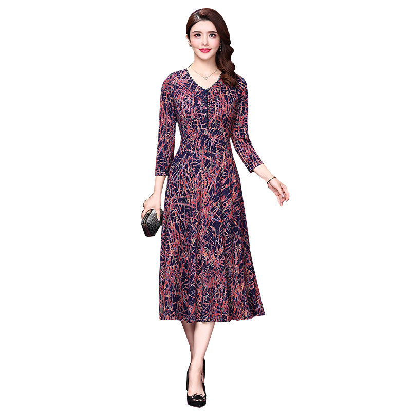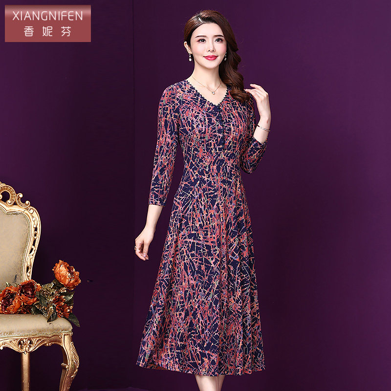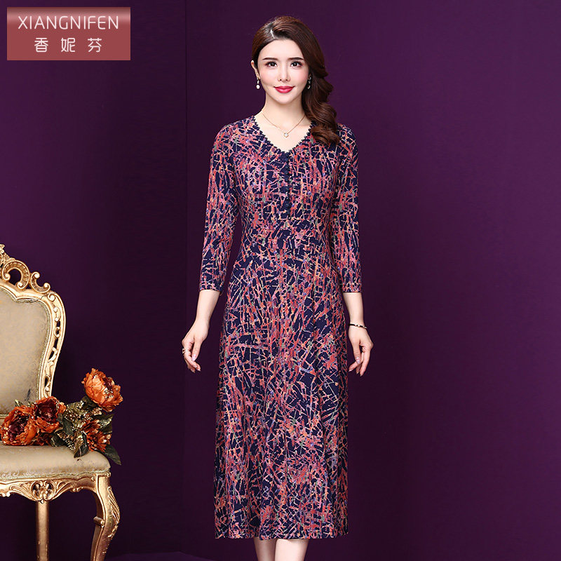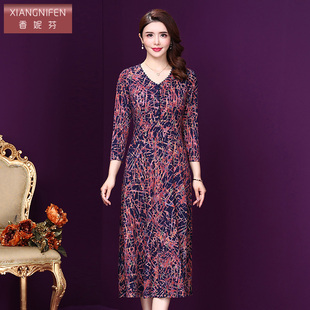 连衣裙40岁洋气大码 中年妈妈装 弹力针织印花裙 新款 香妮芬2025秋季