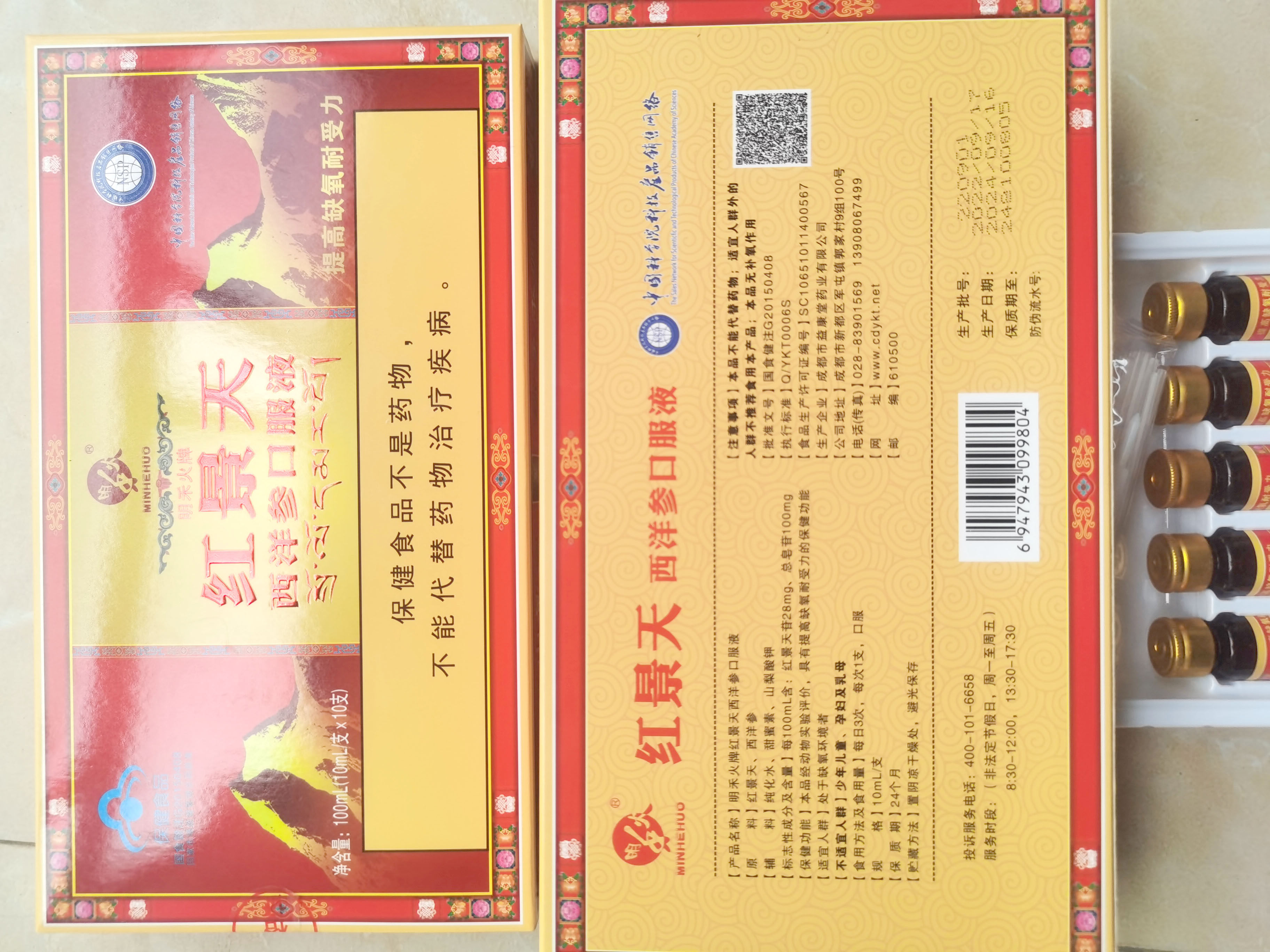 3送1 明禾火西藏红景天西洋参口服液自驾游抗高原反应