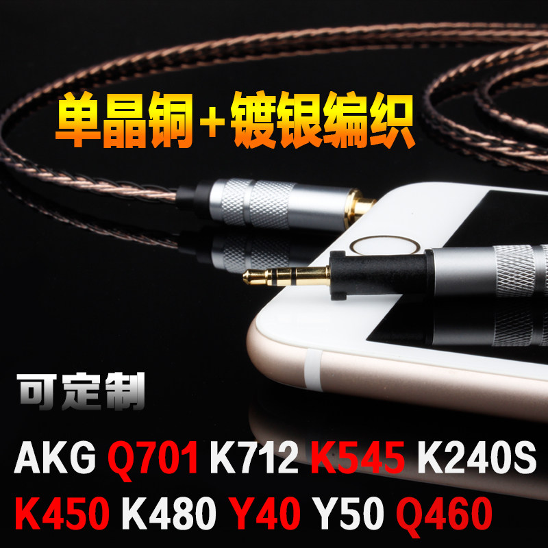单晶铜镀银akgk450q460k480y50y40q701耳机线连接线耳机升级线