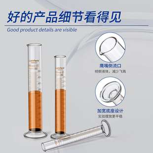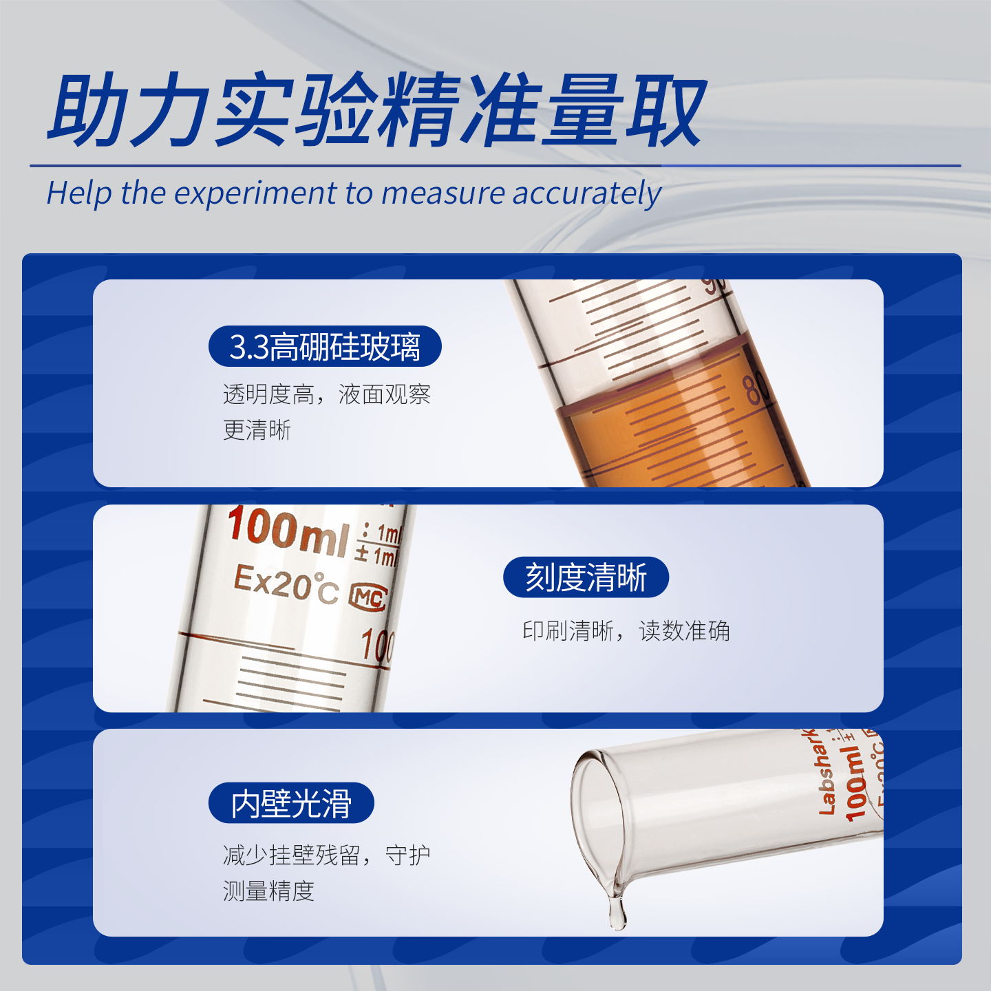 Labshark玻璃量筒1000ml湘玻高硼硅量筒高精准实验器材实验室量杯