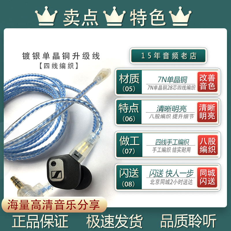IE8 IE8I 7N单晶铜耳机升级线适用于森海塞尔IE80 IE80S
