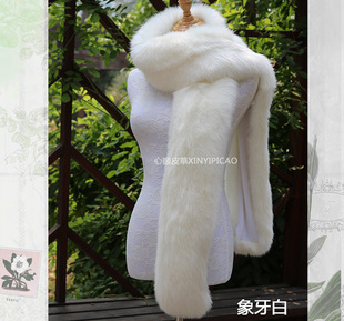 狐狸毛披肩围脖百搭仿皮草围巾女冬季 斗篷 仿貉子毛毛领子帽条长款