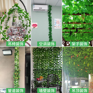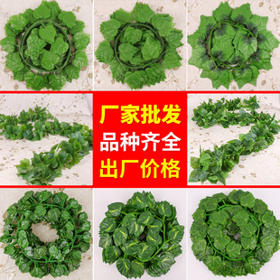 仿真葡萄叶假花藤条藤蔓植物塑料绿萝树叶子绿叶下水管道装 饰吊顶