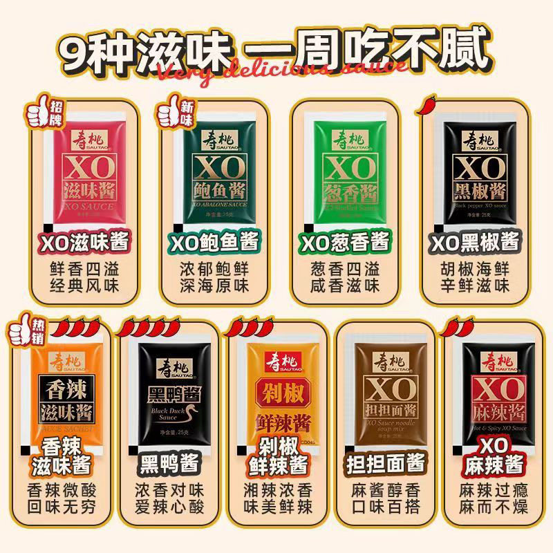 30包 11车仔面酱料包 盒寿桃牌XO滋味酱香辣麻辣酱25g拌面海鲜酱7