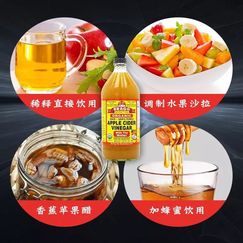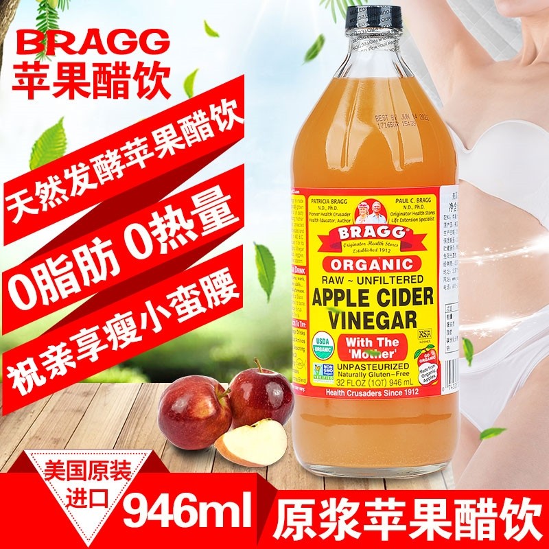 Bragg苹果醋生酮醋饮apple vinegar酵素食用水果醋946ml cider