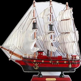 中式 实木质一帆风顺手工艺品带灯帆船模型摆件客厅小摆设生日礼物