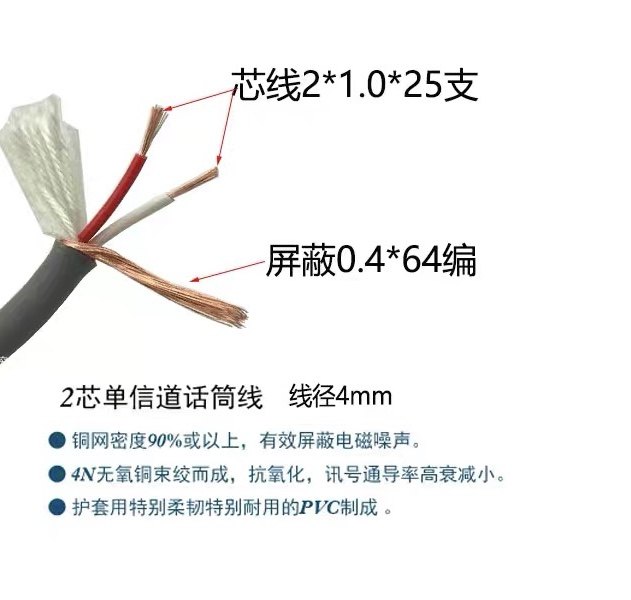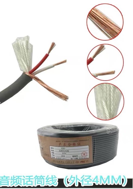 纯铜两芯细音频线灯光信号线2 0.22话筒音频线卡侬线工程灰4.0mm