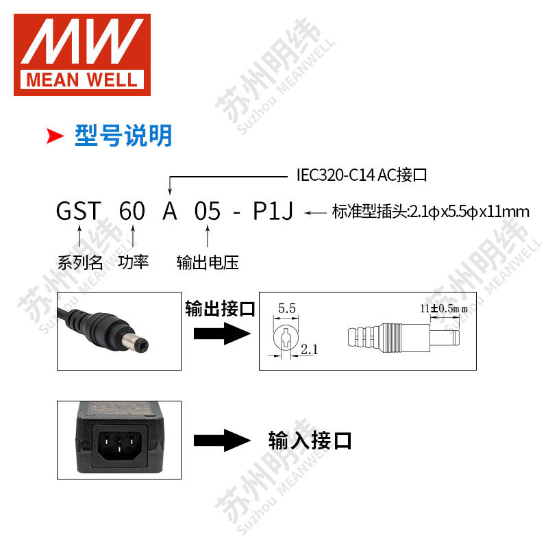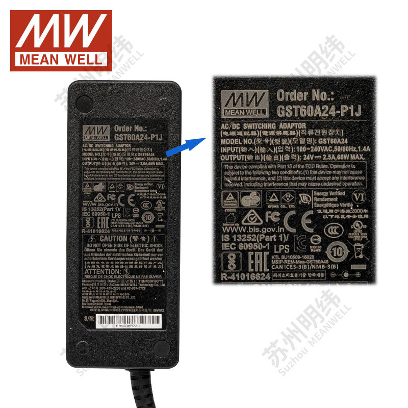 1a2a3a5a 60W 明纬开关电源适配器GST60A5v9v12v15v18v24v48v P1J