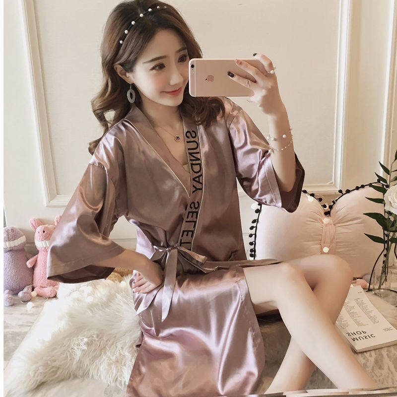 和服睡衣性感冰丝半袖 大码 睡裙女宽松日式 春秋款 女浴袍 睡袍女夏季