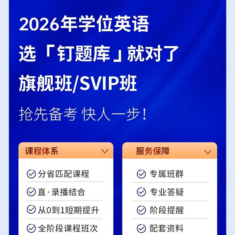 钉题库2026年学士学位英语考试网课成人高考视频课程教材历年真题