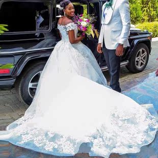 法式 新娘结婚出门纱轻奢质感012 缎面一字肩婚纱公主风2025新款