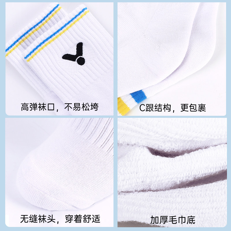 子墨袜子男士 纯棉纱线冬长筒7A抗菌白色长袜运动防臭毛巾底黑厚款