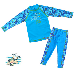 男生儿童分体长袖 防晒服连体中大童冲浪浮潜专业速干 游泳衣套装