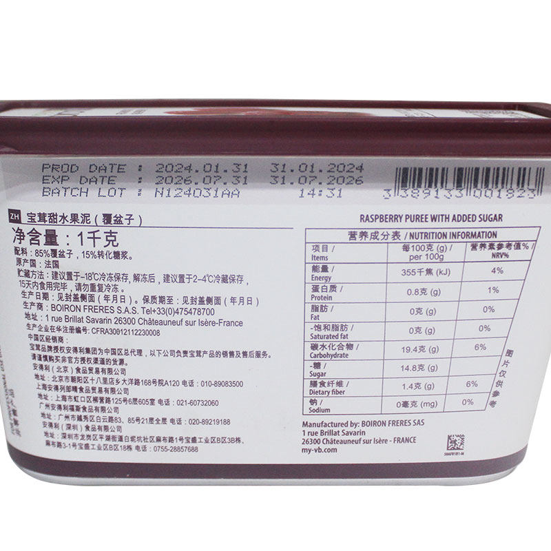 宝茸树莓果泥1kg法国进口桑子果茸覆盆子果溶水果蓉果酱冰沙烘焙