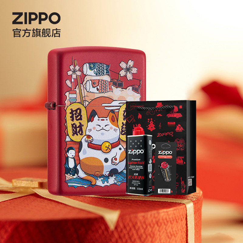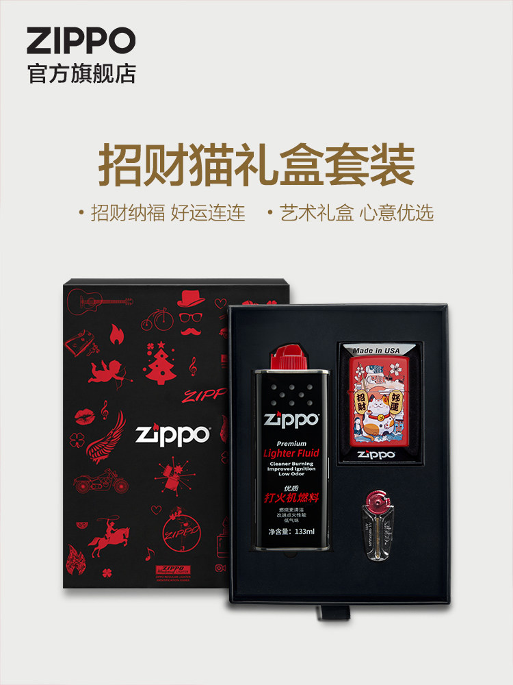 之宝招财猫套装 防风煤油打火机Zippo官方旗舰店送男友圣诞礼物