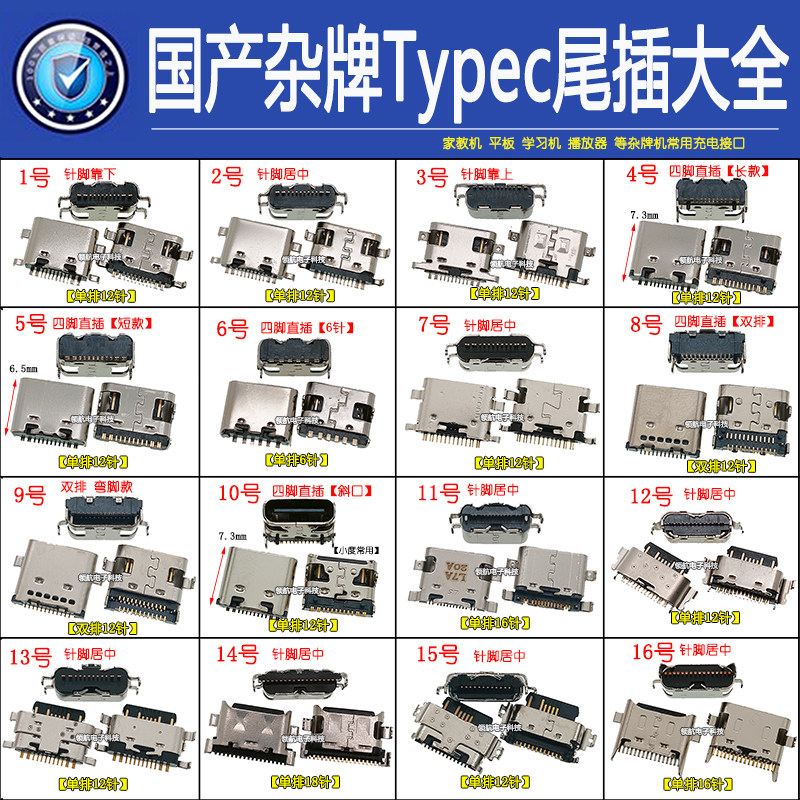 Typec尾插国产12针充电宝学习机杂牌机平板电脑 常用安卓手机接口