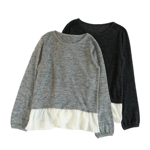 文艺1681 女装 棉绒拼接日系小清新秋冬加厚宽松针织长袖 T恤打底衫