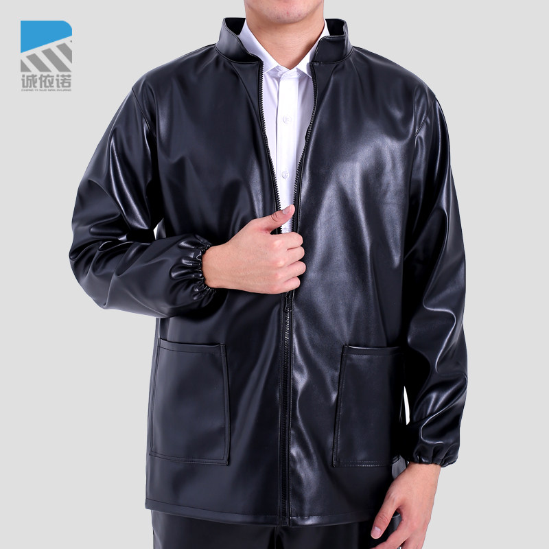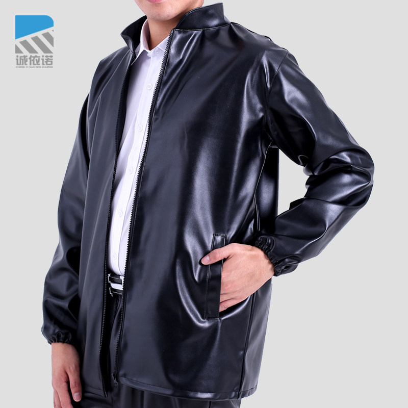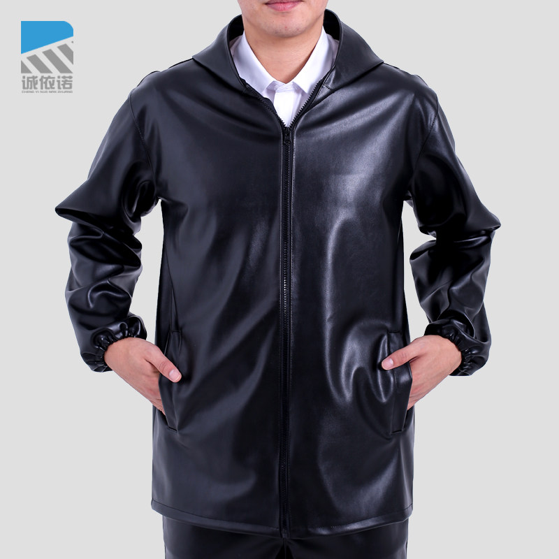 皮衣男春款 连帽pu外套防油防水耐磨干活穿外卖骑行代驾劳保服 薄款