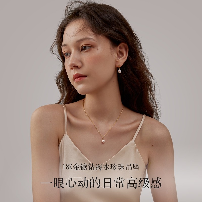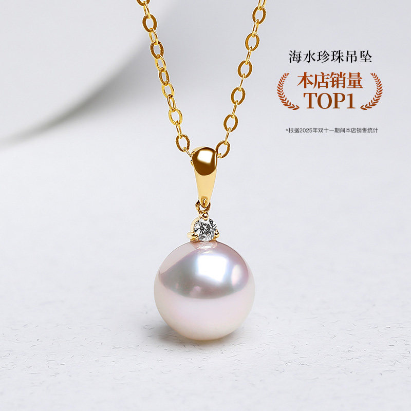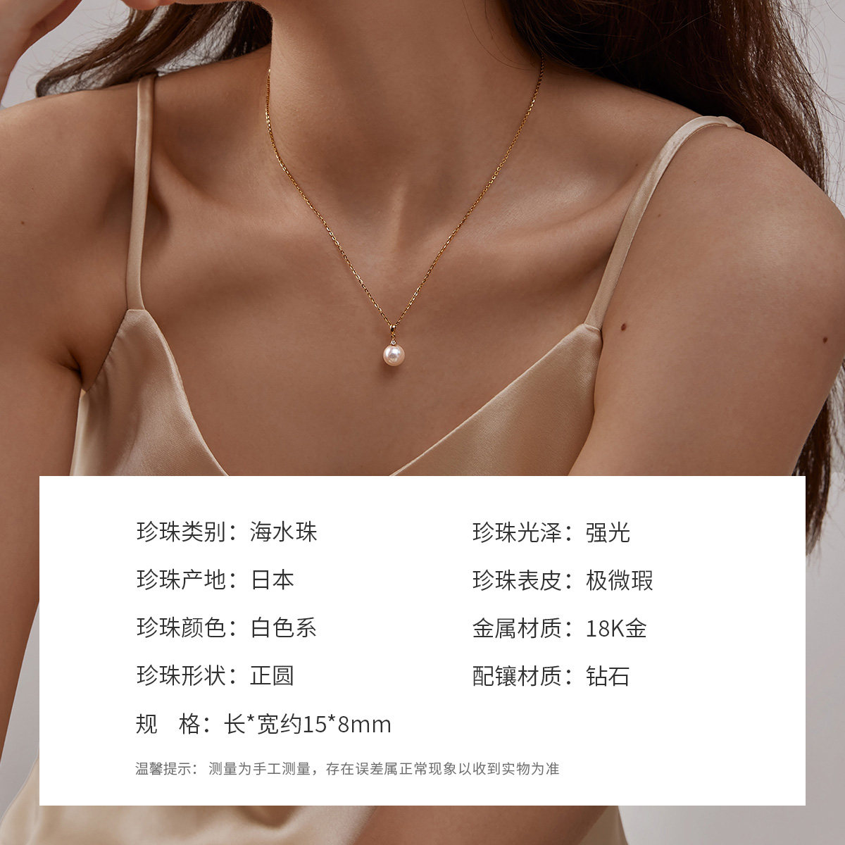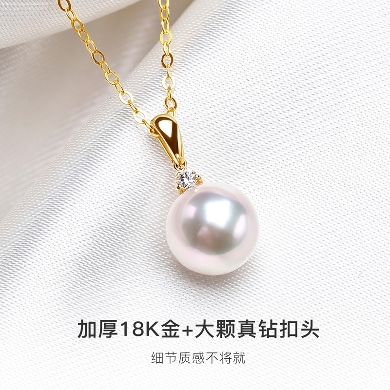 珍珠皇后 akoya海水珍珠吊坠女18k金镶钻正圆锁骨链项链送女友