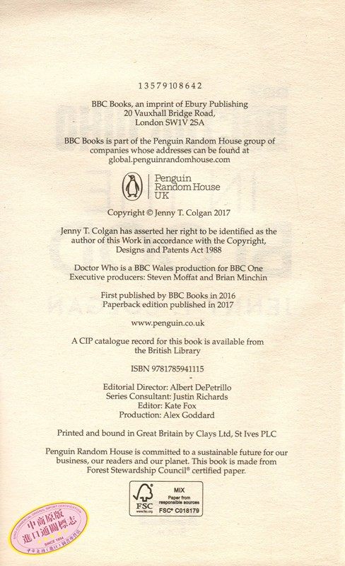 Colgan Books Who Blood Jenny the Doctor BBC 神秘博士:血液中 英文原版