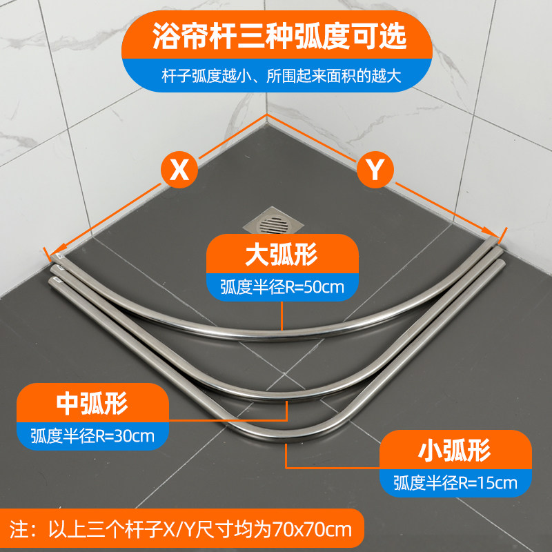 304不锈钢浴室杆弧形窗帘杆扇形L型浴帘杆打孔卫生间厕所遮挡帘
