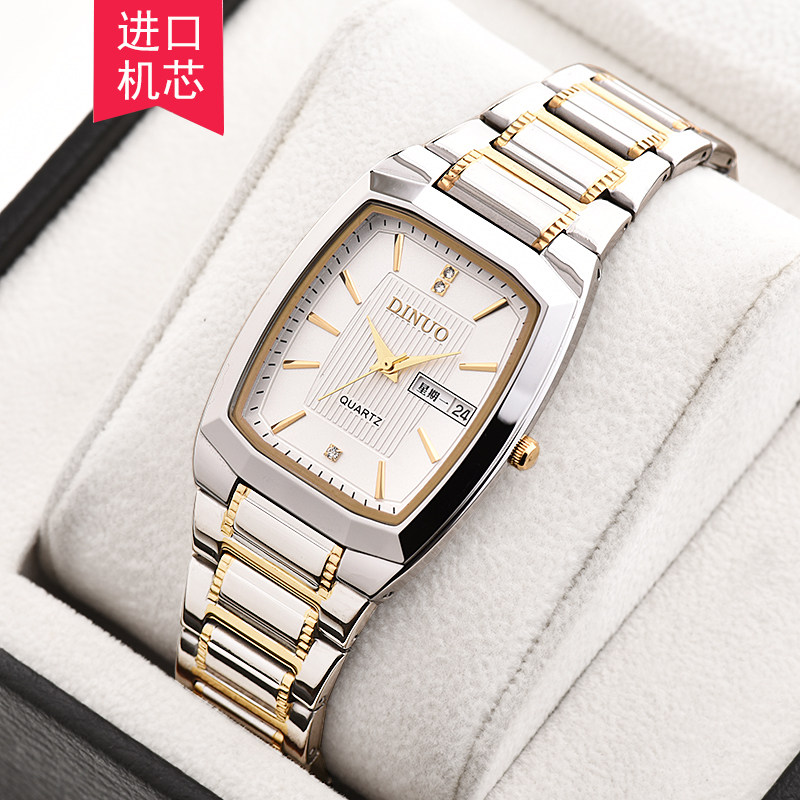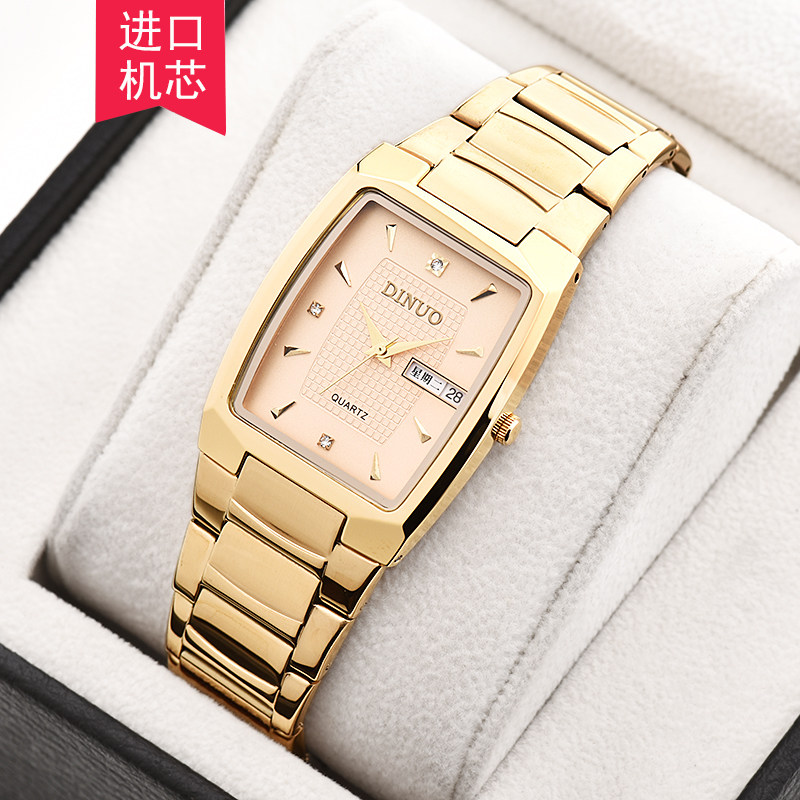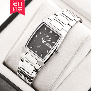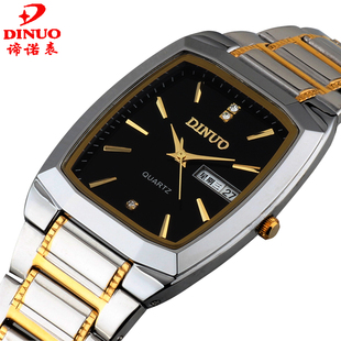 钢带长方形防水石英表 商务休闲腕表 超薄双历男表 男士 谛诺手表