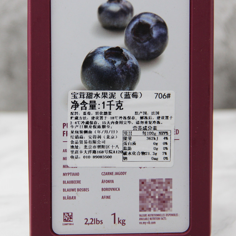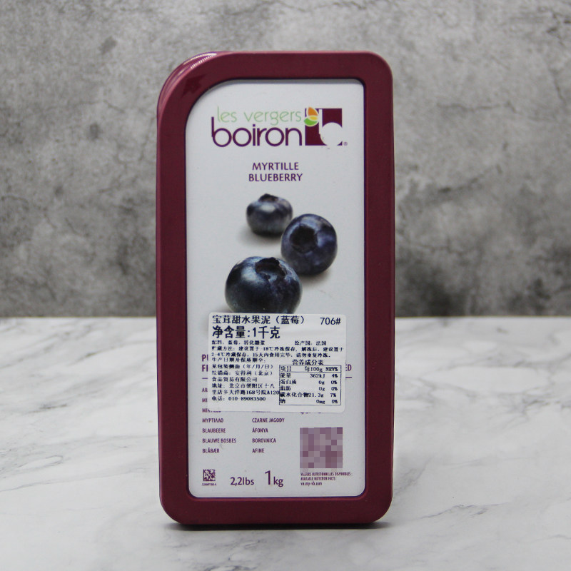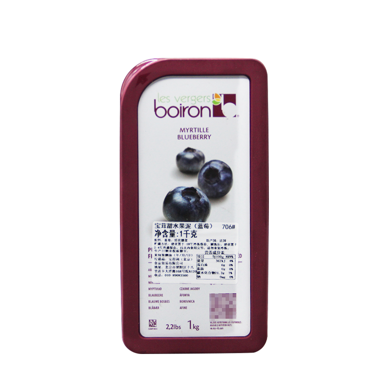 Boiron宝茸蓝莓果茸水果泥1kg法国原装 进口蓝莓果溶甜品软糖原料