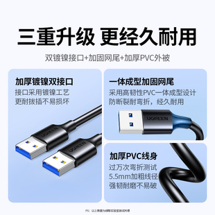 绿联双头usb3.0数据线公对公两双头连接口延长线转换传输移动硬盘盒笔记本电脑散热器供充电机顶盒刷机USB2.0
