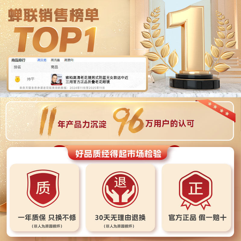 索柏高清老花镜男式 远中近三用官方品牌折叠老花眼镜 防蓝光女款