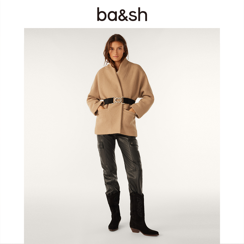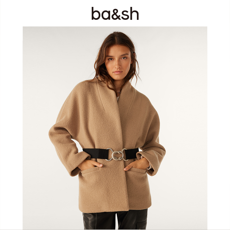 摩卡慕斯棕披肩羊毛毛呢外套大衣1H23CARO bash秋冬法式 2件8折