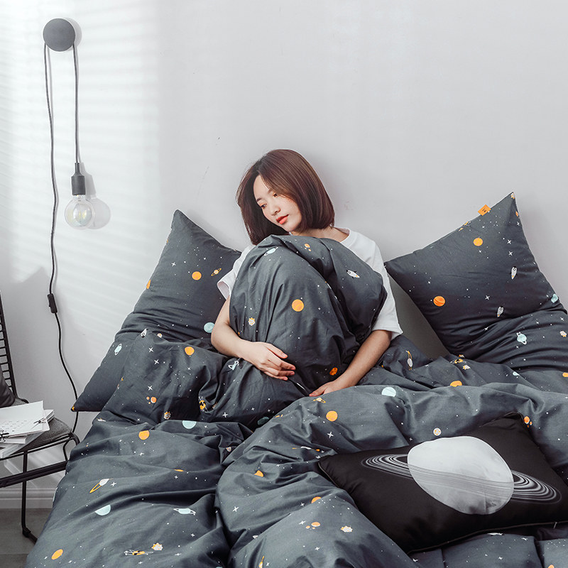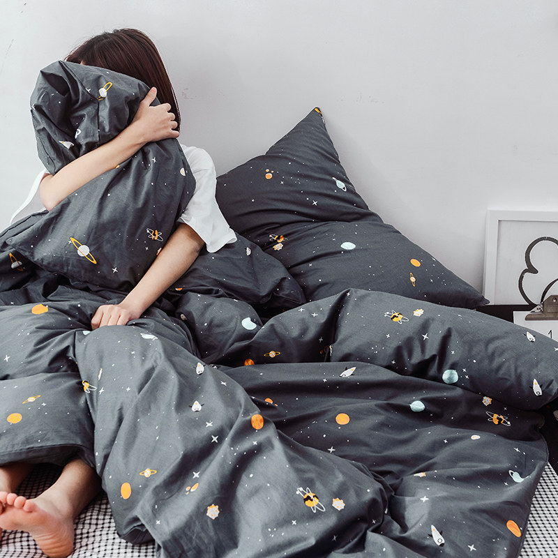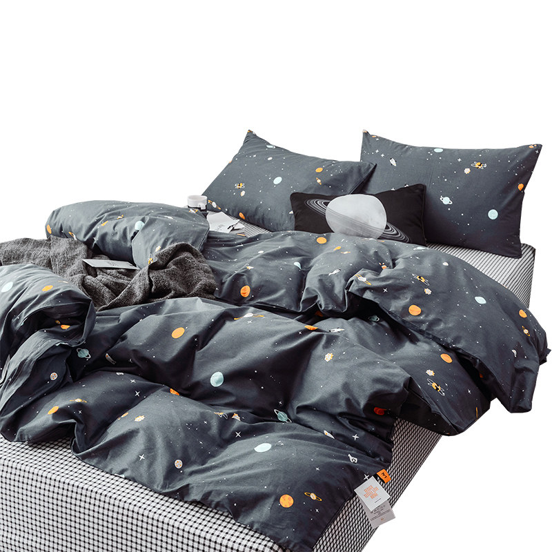 北欧风纯棉斜纹四件套100全棉学生宿舍床单3件套卡通床上用品被套