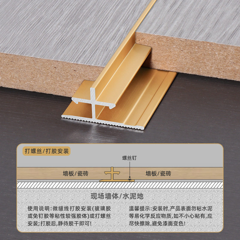 买10根送2根 铝合金土字型收口条加厚护墙微缝线极窄缝隙卡条